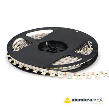 Tira flexible para interiores, bajo consumo de energía, baja producción de calor y larga vida útil; cuenta con una cinta adhesiva en la parte trasera para su fácil instalación. La forma en la que vienen dispuestos los LED le permiten instalarse en contornos sin complicaciones incluso en ángulos de 90°.